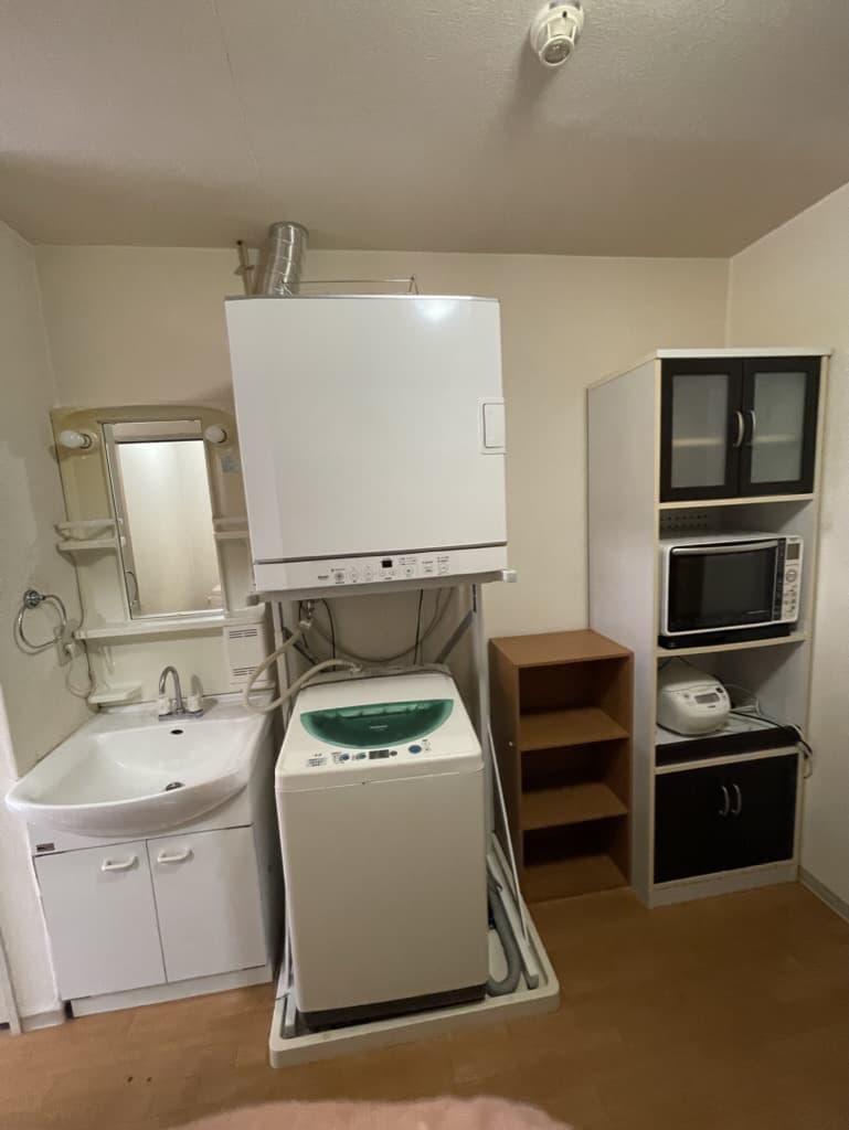 洗濯機も持っていれば、運び出します。でもガス乾燥器便利ですよ。レンジは、食器棚に!