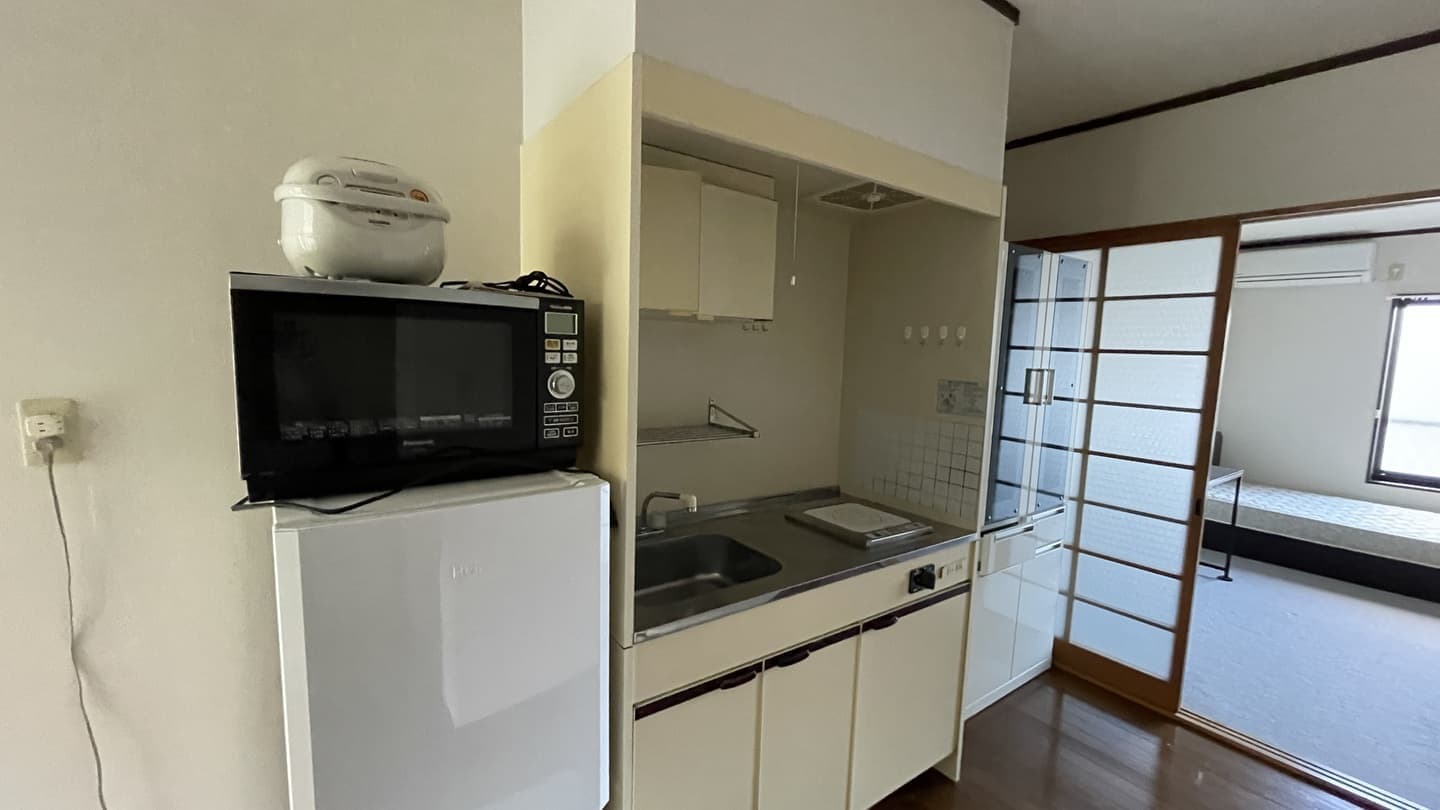 冷蔵庫、料理好きなら、小さいですよね、不要な備品がある場合、部屋から倉庫に持って帰ります、IH嫌いな場合は、ガスコンロに変えます。電子レンジもお持ちの場合同じようにできます。