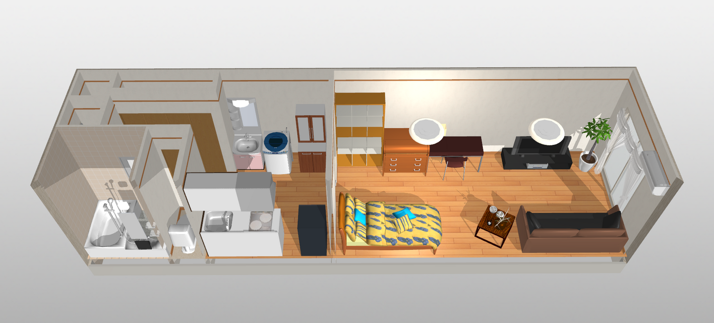 一部屋と広い台所スペースだよ
