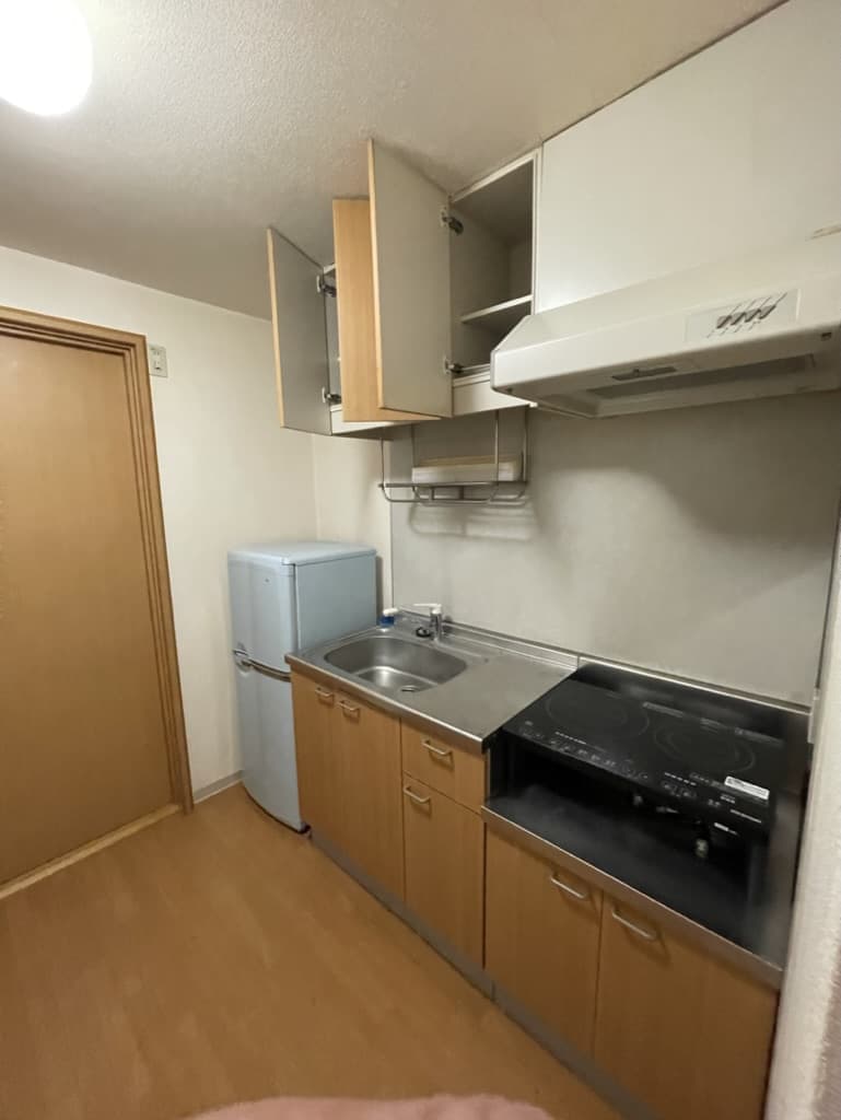 冷蔵庫、料理好きなら、小さいですよね、不要な備品がある場合、部屋から倉庫に持って帰ります、IH嫌いな場合は、ガスコンロに変えます。電子レンジもお持ちの場合同じようにできます。
