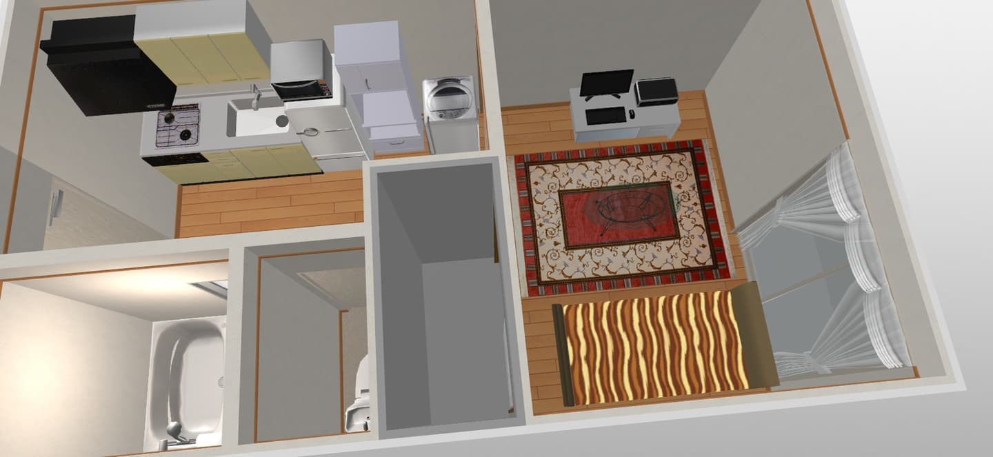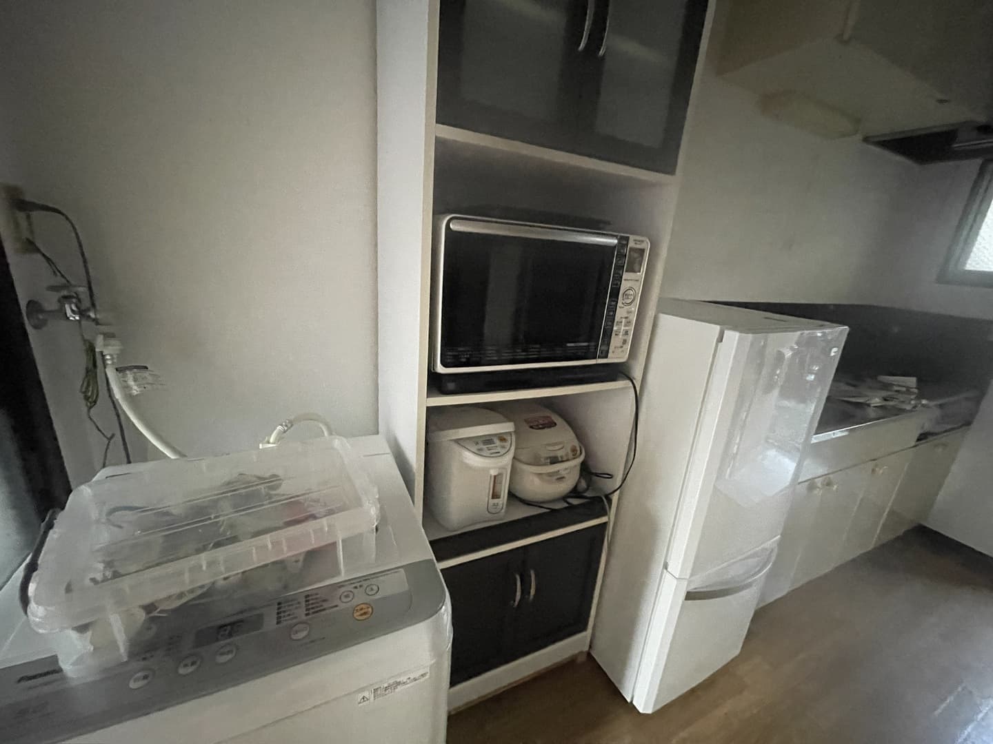 洗濯機、冷蔵庫、オーブンレンジ、食器棚、ガスレンジ
