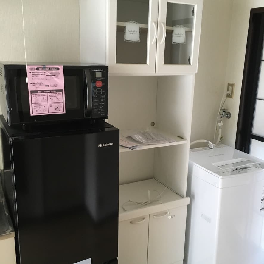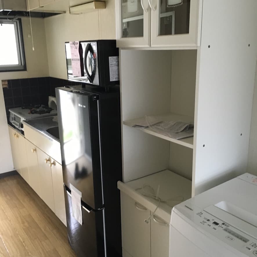 洗濯機、冷蔵庫、オーブンレンジ、食器棚、ガスレンジ