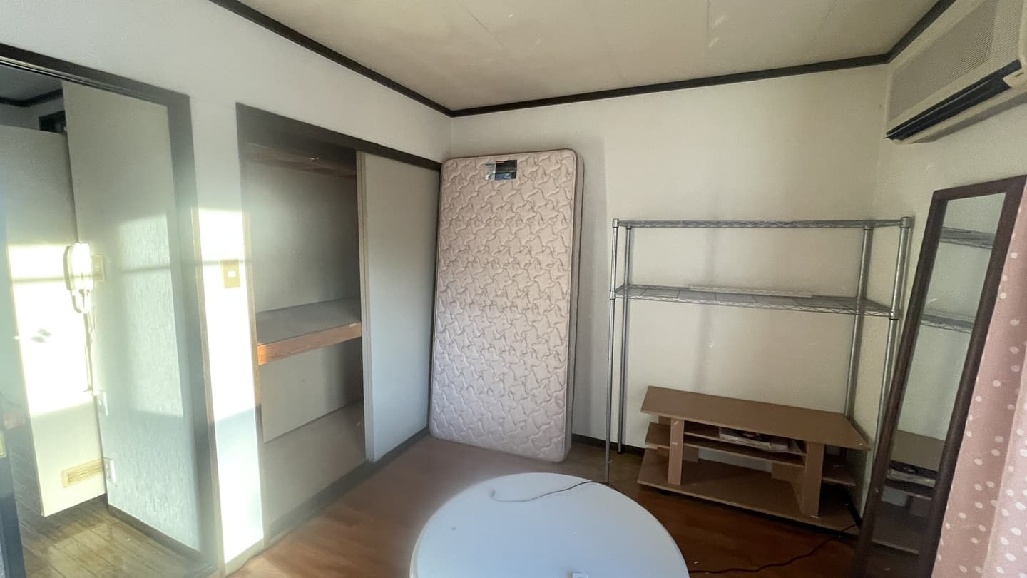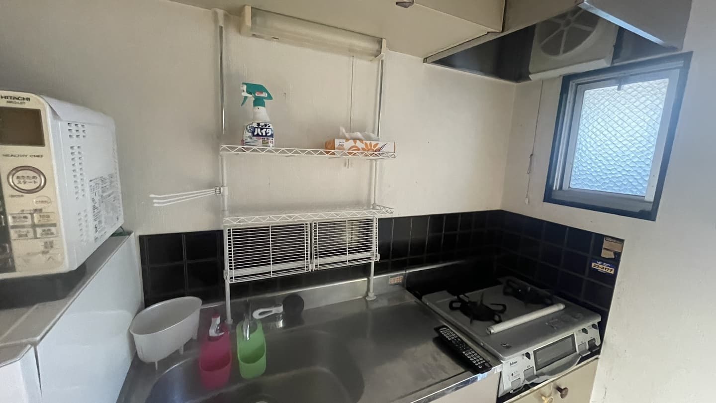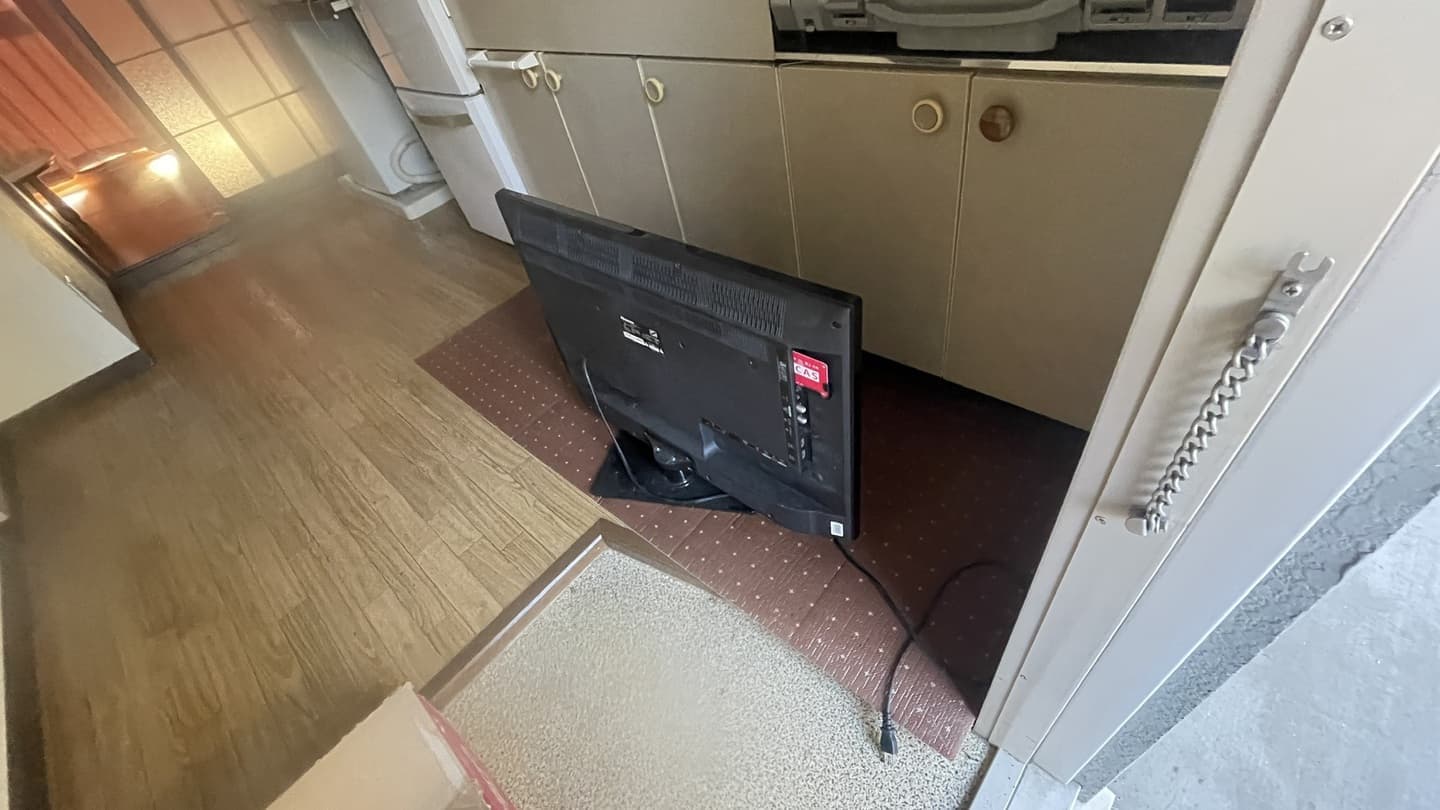 テレビ台 テレビは、台所にちょい起きしています、清掃終わってからせっていんぐします、エアコン古いので、新品に交換します、家賃も安く、エアコン代も安く、生活防衛!