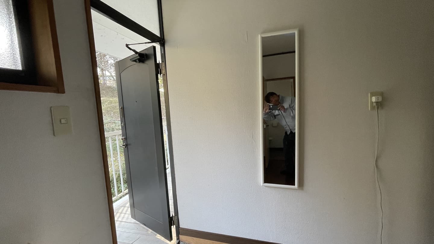 笑 戸袋が反射しています